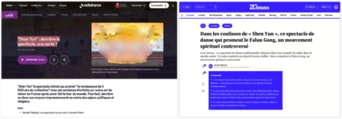 ▲法国国家公共广播电台网站及相关报道截图(左图) 法媒《二十分钟》官网报道截图(右图)