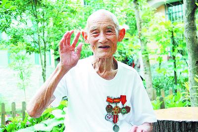 唐造舟老人衣服上挂满了纪念章,都是对以前战争的记忆。彭红霞 摄