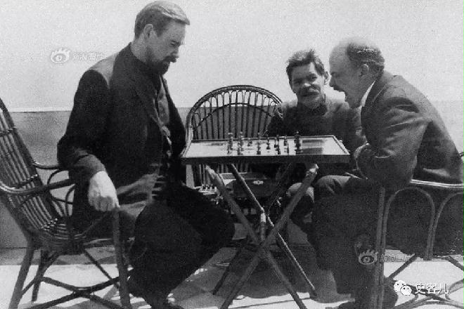 1908年,列宁(右)在高尔基的意大利的别墅与博格达诺夫下棋。