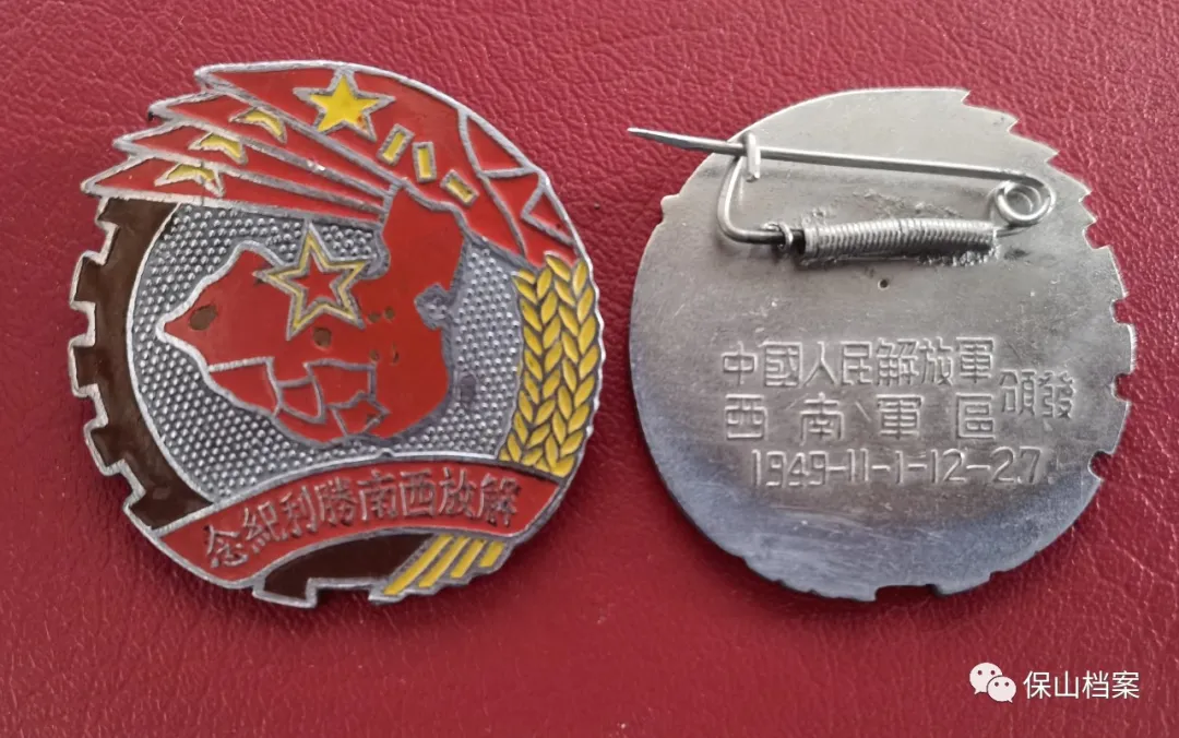 在云南陆军讲武堂历史博物馆内,收藏了一枚解放西南胜利纪念章,该纪念章为金属材质,直径3.6厘米,纪念章中心是一幅红色中国地图,象征全国大陆的解放。地图上方四面“八一”军旗,分别代表人民解放军四支主力野战军。左右两边绘有齿轮和麦穗,背面铸刻有“中国人民解放军西南军区颁发”铭文。