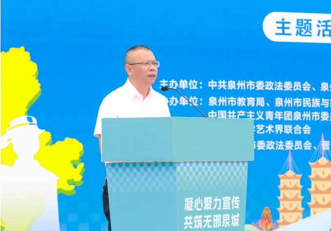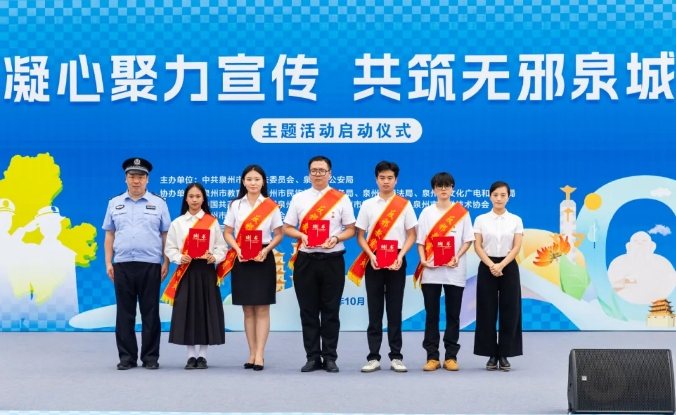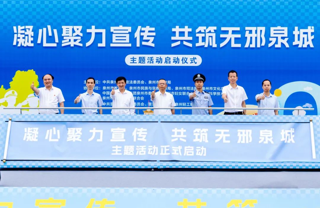 10月22日上午,福建省泉州市“凝心聚力宣传 共筑无邪泉城”主题活动启动仪式在泉州轻工职业学院举行,泉州市委常委、政法委书记蔡天守出席。省公安厅、泉州市委政法委、市委国家安全委员会办公室、市公安局、市教育局、市民族宗教局、市司法局、市文旅局、团市委、市妇联、市科协、市文联和晋江市委政法委、晋江市公安局等相关单位领导,反邪教宣讲员、志愿者和高校师生代表共400余人参加启动仪式。