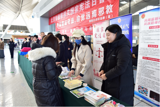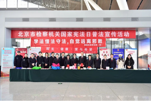 北京市朝阳区委政法委与北京市人民检察院第二检察部、第十检察部、朝阳区检察院第一检察部、北京市公安局朝阳分局、中国铁路北京局集团有限公司北京站一同走进北京朝阳站开展国家宪法日普法暨反邪教宣传教育活动。