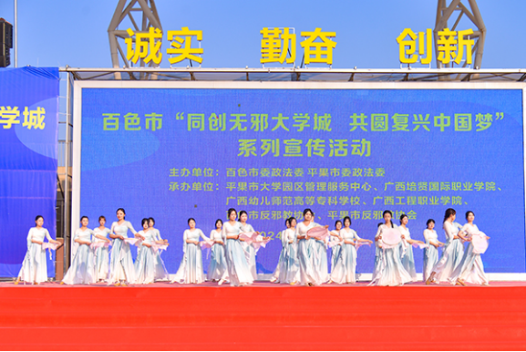 为进一步弘扬法治精神,提升公民法治素养,增强师生抵制邪教侵蚀能力,创建平安无邪校园,2024年12月19日下午,广西平果市在广西培贤国际职业学院开展“同创无邪大学城 共圆复兴中国梦”主题系列宣传活动。广西百色市委政法委、平果市委政法委、市反邪教协会及市直有关单位领导、广西培贤国际职业学院、广西幼儿师范高等专科学校、广西工程职业学院师生等共计7000余人参加了活动。
