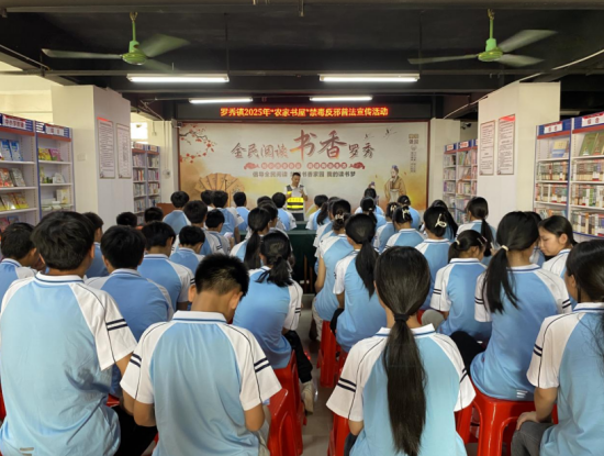 4月22日,在第30个“世界读书日”来临之际,广西来宾市象州县罗秀镇联合执法队、团委、妇联等部门,组织志愿者走进农家书屋以“书香伴成长,反邪护青春”为主题,开展青少年反邪教警示教育宣传活动。