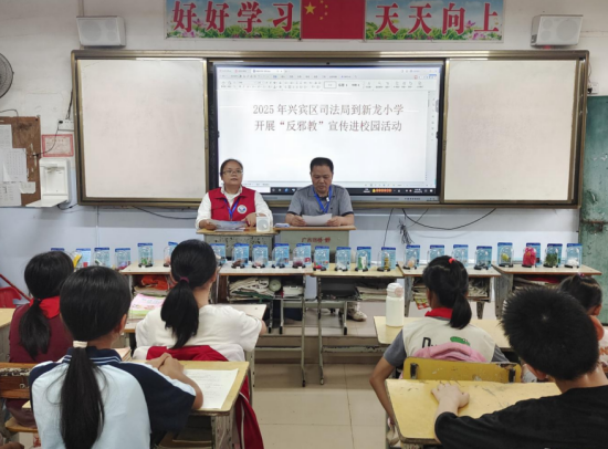 为增强青少年识别、抵制邪教的意识和能力,筑牢校园反邪教思想防线,近日,广西壮族自治区来宾市兴宾区司法局组织工作人员深入五山镇民族学校、小平阳镇中心小学、城厢镇新龙小学等学校,开展“反邪教宣传进校园”主题活动。