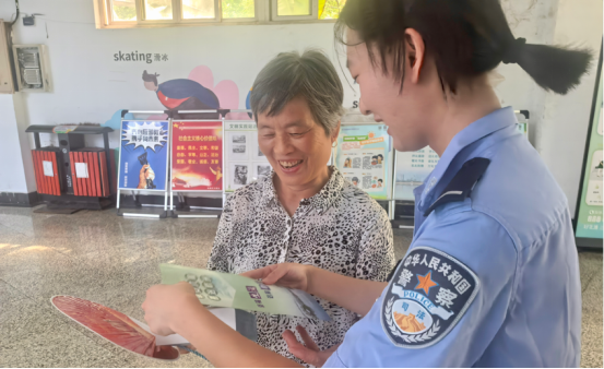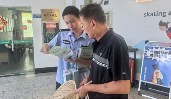 这支由在校大学生组成的暑期反邪教宣传社会实践志愿服务队,充分发挥警校生肯吃苦爱奉献的优良作风,展现藏蓝青春的挺膺担当。他们战高温、斗酷暑,走街串巷,深入小区广场、文化家园、楼道、临街商铺,发资料、送宣传品、做宣讲,为小区居民举行一场热辣滚烫的反邪教宣传活动。