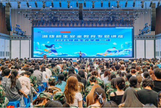 9月24日,浙江省嘉兴市桐乡市公安局、市反邪教协会联合梧桐街道平安法治办,在浙江传媒学院乌镇校区为1400余名2025级新生举办了一场以“反邪教进校园,护航青春成长”为主题的“开学第一课”国家安全教育宣传活动。