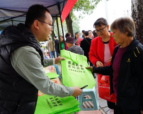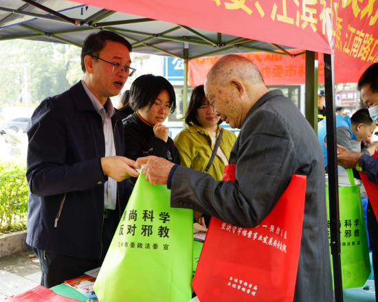 在安全宣传专区,党员们热情接待前来咨询的群众,通过发放宣传资料、现场答疑解惑等形式,开展反电诈、反邪教、护路、交通安全等安全知识普及。针对群众关切的邻里纠纷、家庭矛盾、土地权益、民间借贷等热点问题,党员们结合典型案例,用通俗易懂的语言进行细致讲解,引导居民树立“办事依法、遇事找法、解决问题用法、化解矛盾靠法”的法治观念。同时,积极向群众宣传政法机关优化营商环境、平安建设等重点工作,让群众更直观地了解政法工作成效。在反邪教知识宣讲中,工作人员重点解读了《中华人民共和国刑法》《中华人民共和国治安管理处罚法》中关于惩治邪教犯罪的相关规定,如何为邪教违法犯罪、加入邪教要承担的法律后果等内容,让群众更直观地理解法律在日常生活中的应用,引导群众以合法、合理的方式处理邪教问题。并结合发生过的邪教案例,围绕邪教的表现形式、邪教与宗教的区别、识别邪教的主要技巧等与生活密切联系的热点问题,进行了深入细致的讲解。通过普法宣传与政策解读,切实增强了辖区群众的法治观念,现场的群众纷纷对此次活动表示肯定。