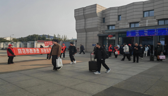 活动现场,反邪教志愿者现场设立宣传咨询点位,手拉横幅,发放宣传单、手提袋等,向返乡人员普及科学知识,如生活中遇到邪教传播做到不听、不信、不传,遇到有人发邪教传单、讲歪理,或者拉你加入什么“教会”,直接扭头走,别搭理,也不把这些东西传给别人,发现有人在小区、村里、街头传播邪教,或者上门骚扰,马上拨打110报警。帮助返乡群众认识邪教的本质、特征及骗人手法,引导大家提高防范意识,自觉参与到反邪教宣传行列,回家后多向亲人、朋友宣传反邪教知识,共同远离邪教,避免上当受骗。