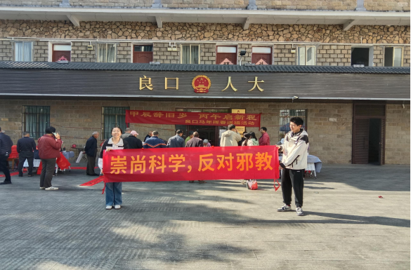 良口镇在人大广场举办“欢庆佳节年味浓 反邪宣传不放松”活动,工作人员提炼出三大春节防邪口诀, 让大家警惕邪教伪装的免费礼品、邪教假借宗教的骗人套路以及正确处理“反宣币”的方法,志愿者现场演示识别技巧。现场群众热情参与,送出宣传小礼品300余份。