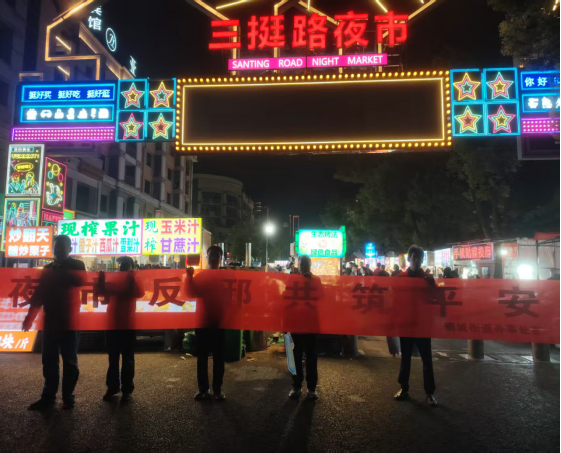 夜幕下的浙江省义乌市“三挺路夜市”人声鼎沸,游客们摩肩接踵。11月8日至9日,浙江省义乌市委政法委会同稠城街道平安法治办以此为契机开展“反邪夜市 共筑平安”宣传活动,取得良好的社会反响。