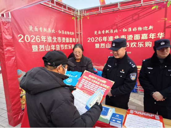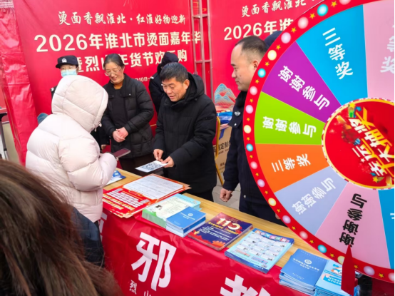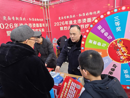 2026年1月10日,在安徽省淮北市烫面嘉年华热闹开市、街巷飘香之际,淮北市烈山区委政法委联合区司法局、区商务局、烈山镇等单位,在人流密集的节庆现场开展了“崇尚科学反邪教 民俗传情护平安”主题宣传活动,让反邪教宣传接地气、入人心。