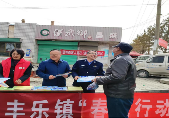 为深入推进反邪教警示教育,提升辖区群众识邪、辨邪、拒邪的能力,近日,在熙熙攘攘的甘肃省酒泉市肃州区丰乐镇大集上,一个特殊的“摊位”正式“开张”。由镇法治办、司法所、派出所联合组成的反邪教工作组,将宣传阵地搬到了集市路口,用一场“烟火气”十足的宣传,为群众送上了一份特别的“平安大礼包”。
