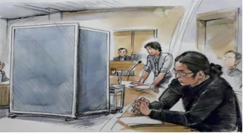 ▲嫌疑人山上彻也听取母亲(屏风内)证言。图源:读卖新闻