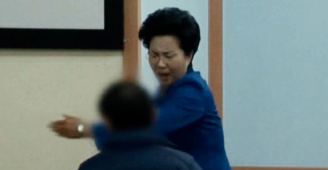 ▲“恩惠路堂”头目申玉珠殴打一名信徒。图源:BBC
