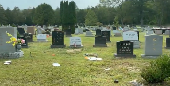 ▲“法轮功”美国老巢“龙泉寺”附近弟子墓地。根据墓碑上年龄,众多“法轮功”人员早逝,有的甚至是在新冠疫情期间夫妻双亡