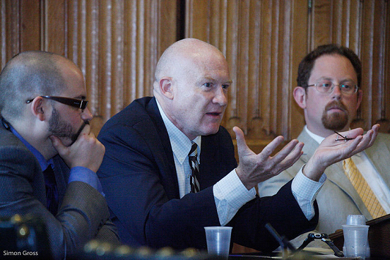 ▲ 新西兰“法轮功”学员贾亚·吉布森(左一)曾担任美国前情报人员葛特曼(中)的助手,替“法轮功”编造“器官采摘”谣言