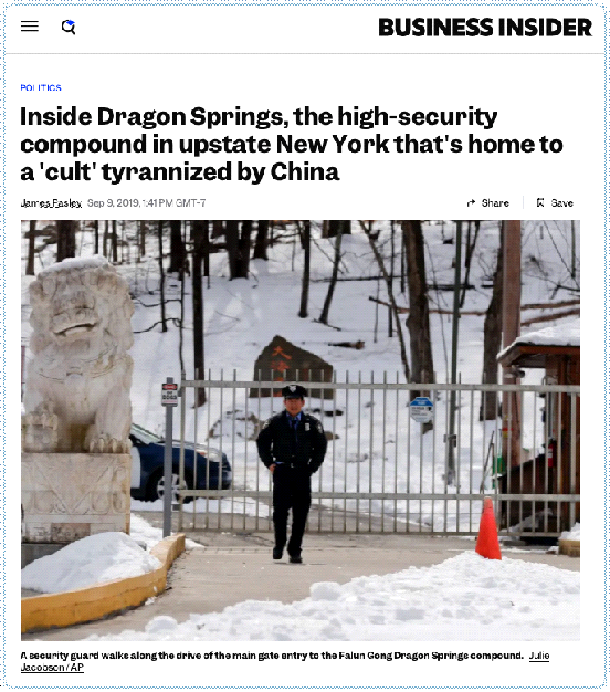 ▲美国《商业内幕》网站揭露“法轮功”戒备森严的“龙泉寺”老巢内幕。图源:Businessinsider.com