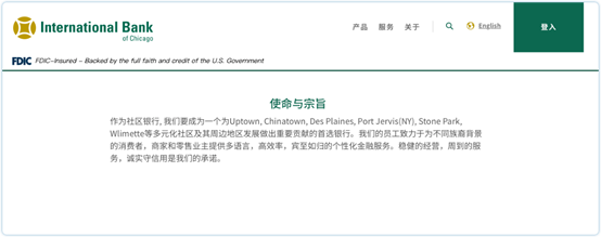 ▲“法轮功”邪教背景的“芝加哥国际银行”在其网站“使命与宗旨”版块中自我吹嘘“诚实守信用是我们的承诺”。“芝加哥国际银行”网站截图