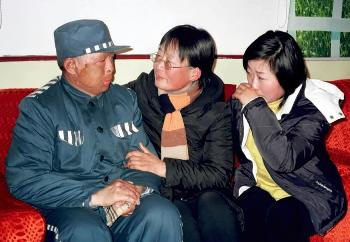 ▲王进东的妻子、女儿在郑州监狱探望王进东