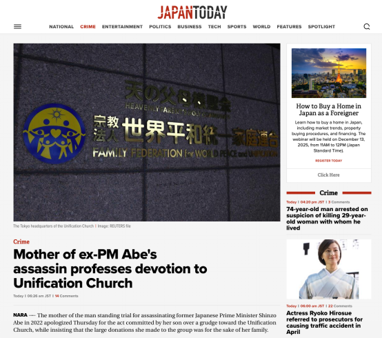 Source Link: https://japantoday.com/category/crime/Mother-of-ex-PM-Abe%27s-assassin-professes-devotion-to-Unification-Church