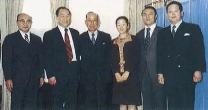 ▲1973年11月23日,岸信介在“统一教”总部会见文鲜明及其夫人韩鹤子。左起分别为“统一思想研究院院长”李相轩、文鲜明、岸信介、韩鹤子、原韩国“统一教”会长金荣轩,以及久保木修己