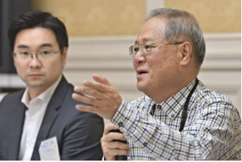 ▲桥田立男(Tatsuo Hashida,右)在2023年10月12日新闻发布会流泪讲述遭遇。他的前妻长期痴迷“统一教”,因其巨额捐赠引发家庭经济危机,造成他们的大儿子绝望自杀