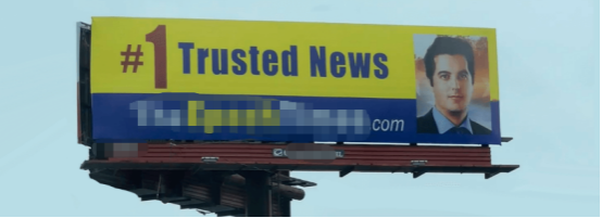 ▲《大纪元时报》竖立在美国高速公路旁边的广告牌,在上面吹嘘自己是“首屈一指的可靠新闻媒体”
