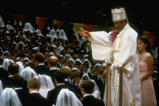 ▲邪教组织“统一教”前头目文鲜明(已故)主持集体婚礼。图源:Getty Images