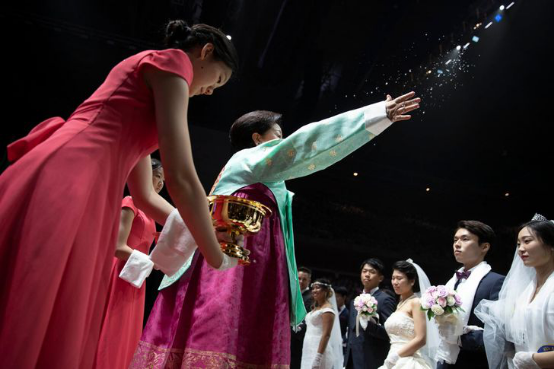 ▲2018年8月27日,“统一教”在韩国京畿道加平郡清心和平世界中心举行大规模集体婚礼。约3万名成员出席,其中不乏国内外政界与社会名流,约4000对新人在仪式中被集中“配婚”。图源:《韩国时报》