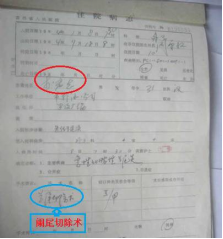 ▲李洪志的住院病历及住院医疗费用交款凭证