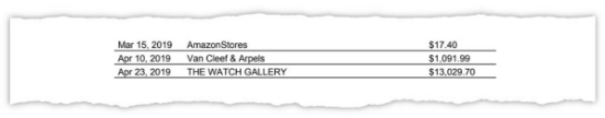 更令人震惊的是,2018年和2019年苏静病重期间,其名下信用卡被用于购买奢侈品,金额达到数万美元。对账单显示,有人使用该卡在伦敦的手表画廊(Watch Gallery)消费了13029.70美元,在雨果博斯店(Hugo Boss)购买羊毛西装及其他衣物消费了10000美元,在奥地利的爱马仕店花费了2045.31美元,在瑞士的梵克雅宝(Van Cleef & Arpels)珠宝店花费了1091.99美元。还有数千美元被花费在海鲜和定制台球杆(李洪志是一名狂热的台球玩家),以及包括菲拉格慕和蒂芙尼在内各种高端品牌的奢侈消费。