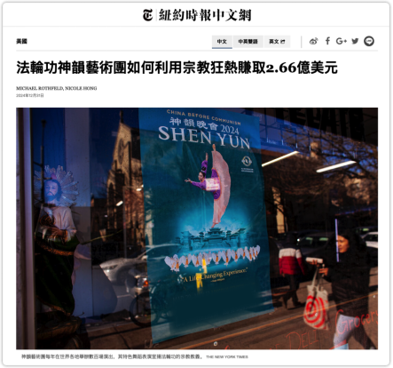 2024年12月31日,美国《纽约时报》中文网刊发调查报道《“神韵”如何利用信徒狂赚2.66亿》,披露“法轮功”旗下“神韵”运作及资金来源情况。报道以苏静事迹为例指出,“神韵”长期依赖成员无偿劳动和个人捐献维系运转,相关资金流向引发争议。